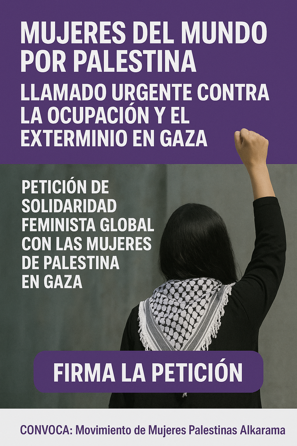 Llamamos a todas las organizaciones de mujeres, de derechos humanos y sindicales del mundo a unirse a esta petición, firmarla y difundirla en sus comunidades y redes. Que la voz unida de las mujeres se convierta en una fuerza real de presión por la justicia y la libertad en Gaza y en toda Palestina ocupada, desde el río hasta el mar.